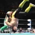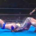 リング中央で羽折固めかけられるオカダ